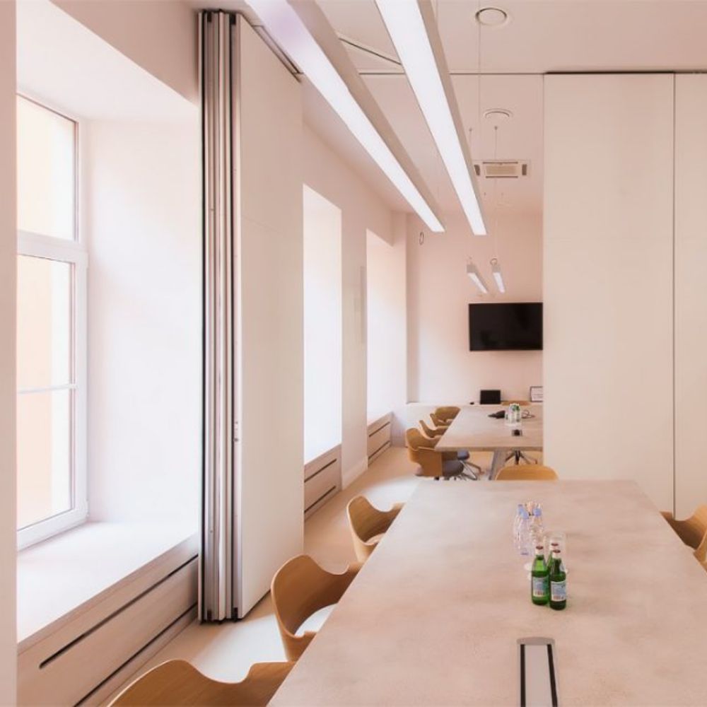 Alumiiniumraamiga profiilid pakuvad eriti soliidset välimust. Palace 90 sobib igasse ruumi. Vaatamata õhukestele paneelidele on Palace 90-l väga ulatuslik funktsionaalsuse pakett. Näiteks on EPDM teleskooptihendite kasutamise tõttu akustilised omadused väga head.